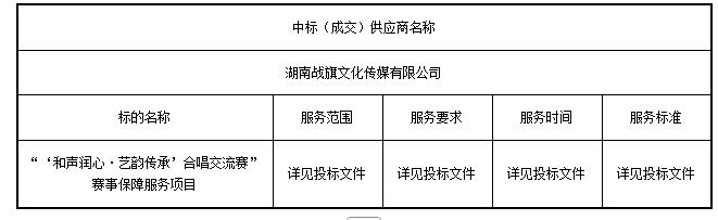 “‘和聲潤心·藝韻傳承’合唱交流賽”賽事保障服務(wù)項目中標(成交)結(jié)果公告