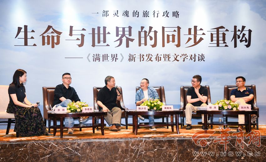 新書發(fā)布會(huì)現(xiàn)場(chǎng),著名文學(xué)家韓少功,著名作家、編劇、影視監(jiān)制李修文,中國(guó)社科院研究員、《民族文學(xué)研究》雜志副主編劉大先,《美文》雜志常務(wù)副主編、陜西省文藝評(píng)論家協(xié)會(huì)副主席穆濤和《滿世界》作者龔曙光,與來(lái)自全國(guó)各地媒體記者和讀者一起,展開(kāi)了一場(chǎng)帶著靈魂旅行的討論。