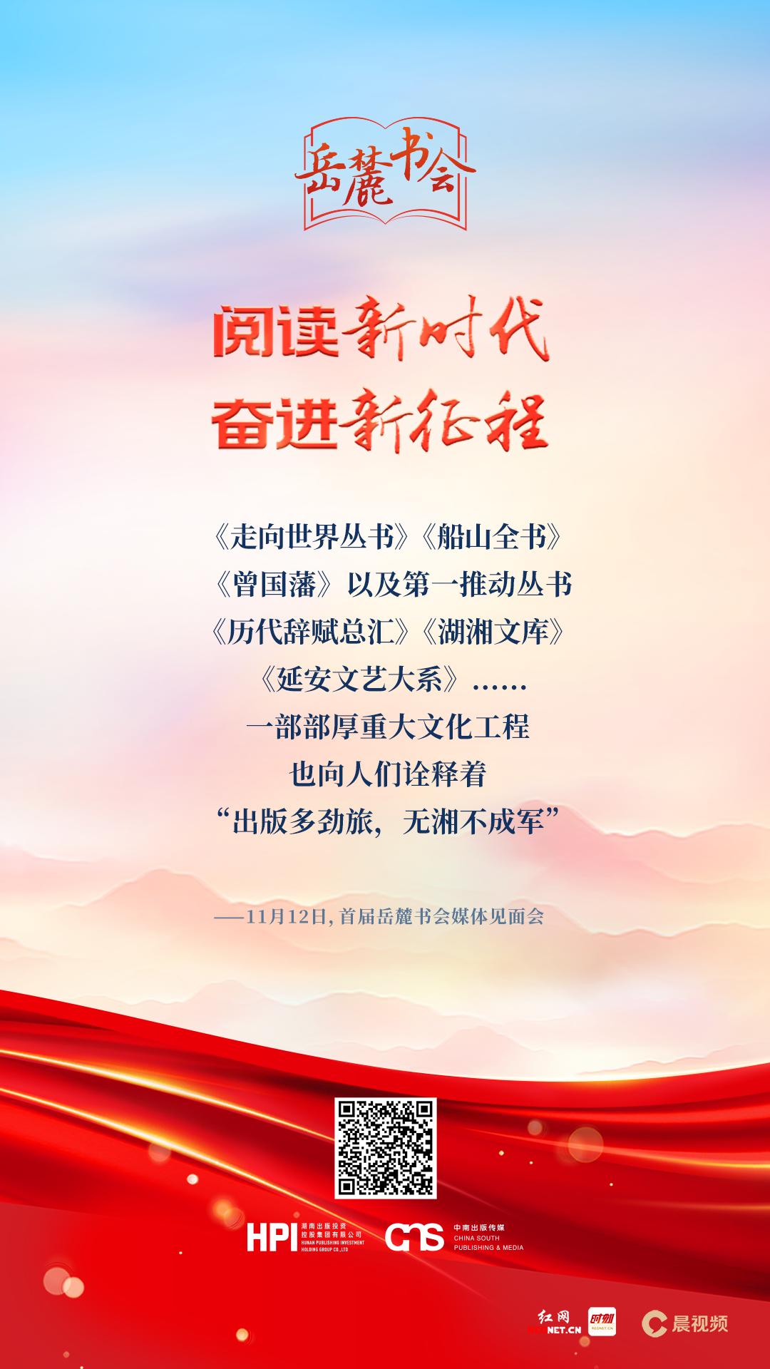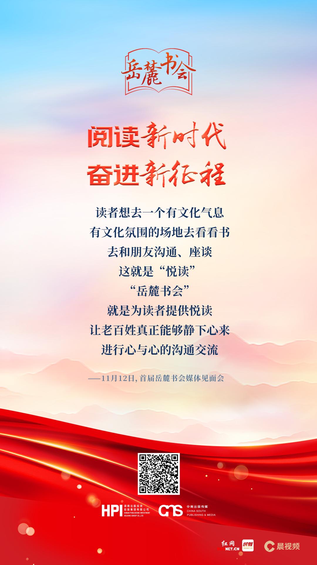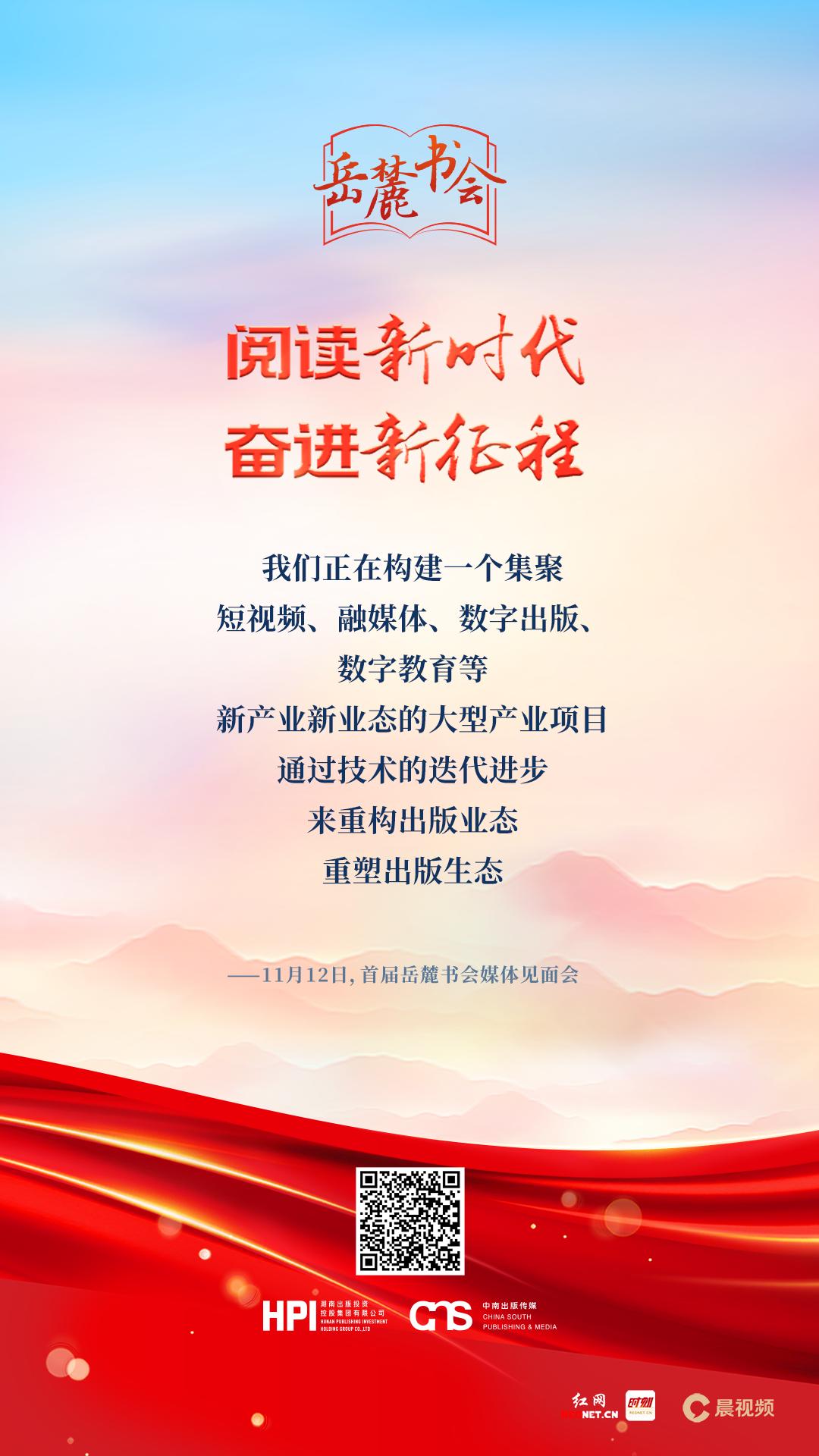所以,在這個(gè)時(shí)候舉辦首屆“岳麓書會(huì)”,既是湖南出版集團(tuán)學(xué)習(xí)宣傳貫徹黨的二十大精神的實(shí)際行動(dòng),是推動(dòng)集團(tuán)第三次黨代會(huì)工作部署落實(shí)落地的“開篇之作”,也是做好新時(shí)代出版工作的必然要求。我們希望,以“岳麓書會(huì)”為起點(diǎn),一方面,通過(guò)舉辦形式多樣的讀書活動(dòng),營(yíng)造良好的閱讀氛圍,讓閱讀成為一種社會(huì)風(fēng)尚,在三湘大地迅速掀起學(xué)習(xí)貫徹黨的二十大精神的熱潮,推動(dòng)黨的二十大精神傳遍千家萬(wàn)戶、入腦入心入行;另一方面,通過(guò)提供高質(zhì)量的出版產(chǎn)品,為廣大讀者提供豐富優(yōu)質(zhì)的精神文化食糧,更好地服務(wù)讀者、服務(wù)人民,讓人們的精神更加富有、發(fā)展更加全面。這就是我們舉辦“岳麓書會(huì)”兩個(gè)最大的初衷和最直接的目的。記者:首屆“岳麓書會(huì)”媒體見面會(huì)的背景板上,“閱讀新時(shí)代,奮進(jìn)新征程”10個(gè)大字很是醒目,作為知名出版企業(yè)的掌門人,您如何理解“閱讀新時(shí)代”里的這個(gè)“新”字?彭玻:對(duì)于“閱讀新時(shí)代”,我們應(yīng)該有兩個(gè)層面的理解: