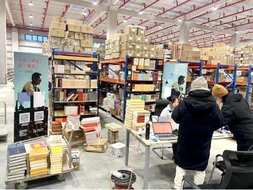 ▲2024北京圖書訂貨會(huì)期間,岳麓書社在河北涿州圖書倉庫進(jìn)行直播。